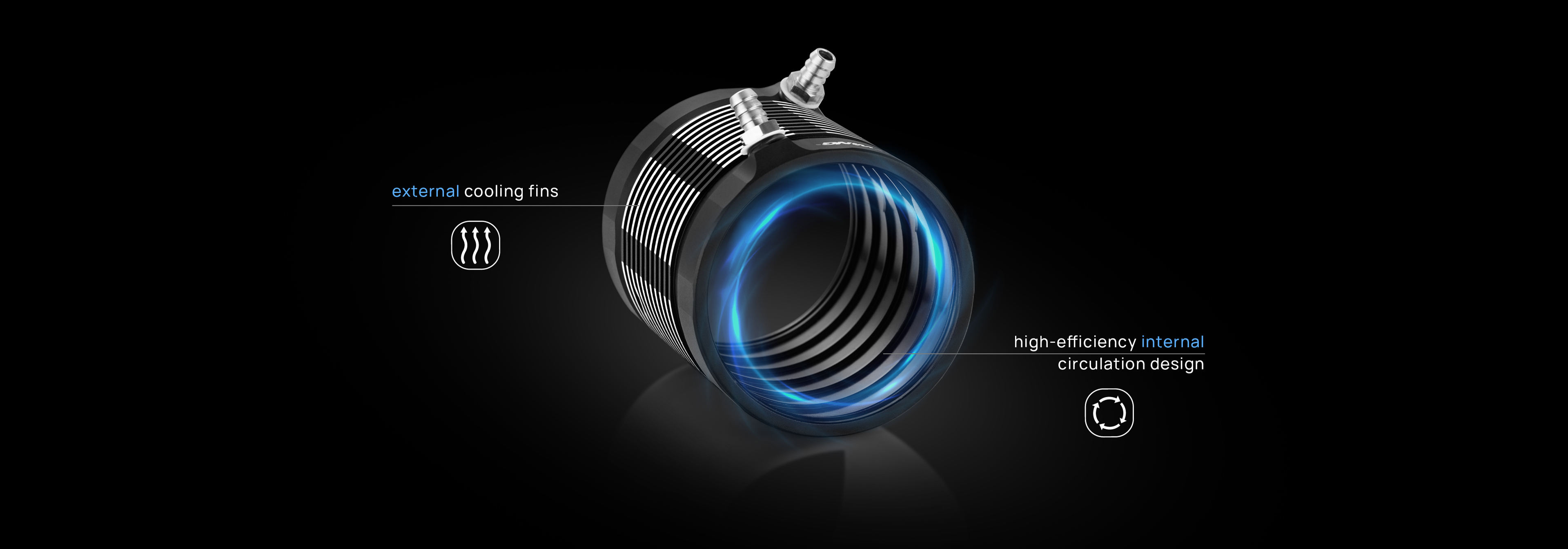 - The motor’s water-cooling jacket features a high-efficiency internal circulation design, with external cooling fins and fan