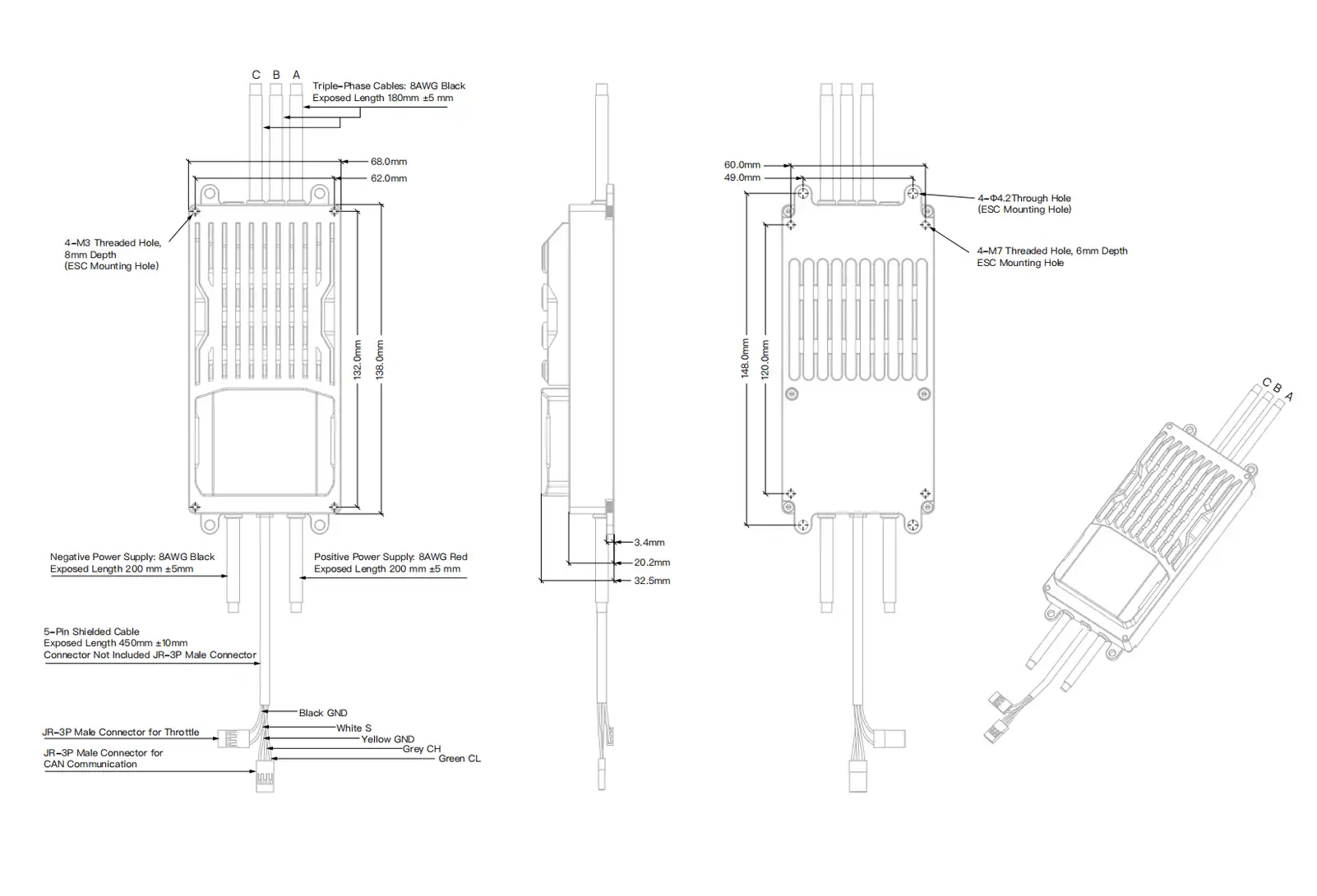 bottom-cover, and side-hole mounting options,