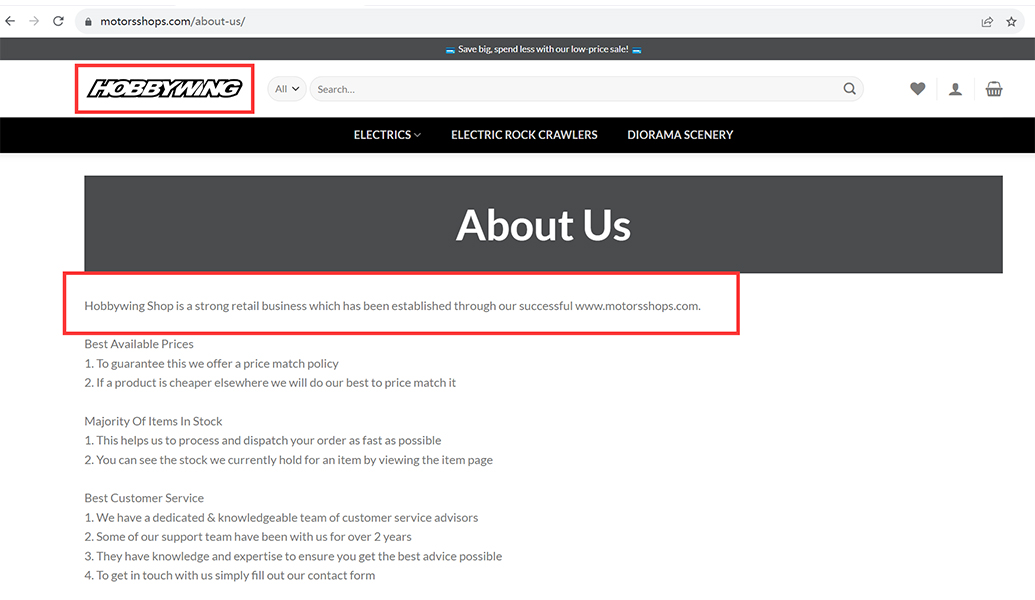 二、“HOBBYWING”为我司合法注册的商标,所有权及使用权均归我司所有,任何未经我司许可或授权的擅自使用行为均属于违法行为。以上所述网站及其他未经授权的且与我司名称近似或冒用我司注册商标的个体、公司及网站、公众号、视频号、APP等从事的任何经营行为均与我司无关,我司不承担任何法律责任。敬请广大用户提高警惕,谨防上当受骗。