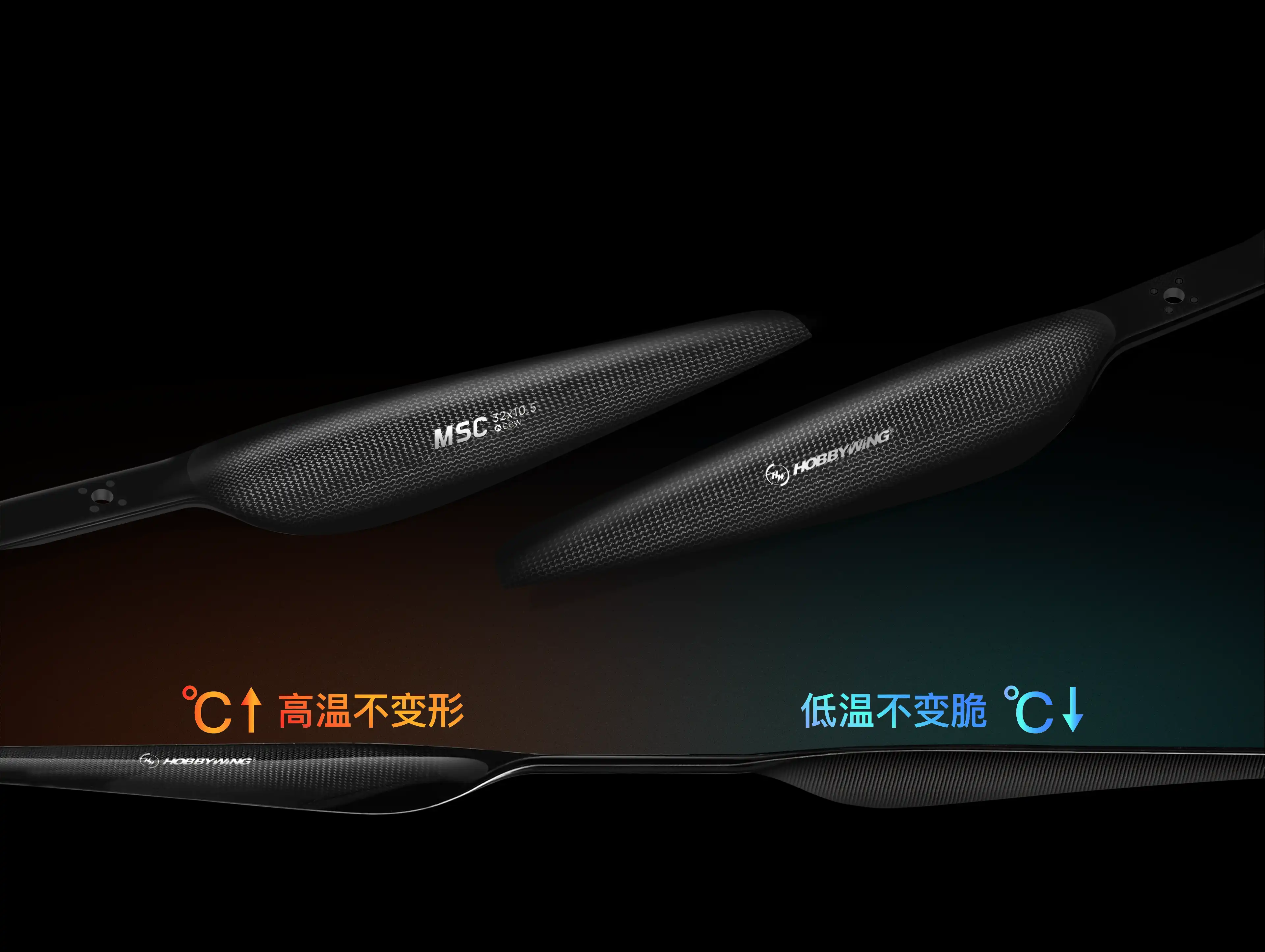 使用碳纤维一体热压成型工艺,确保螺旋桨可靠性耐用性