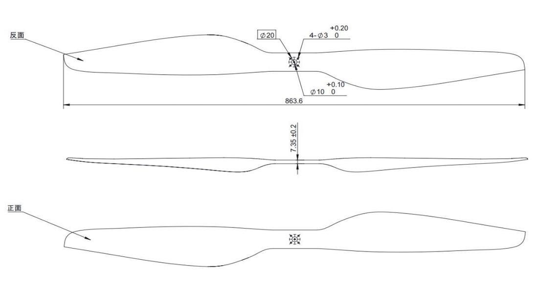 使用碳纤维一体热压成型工艺,确保螺旋桨可靠性耐用性