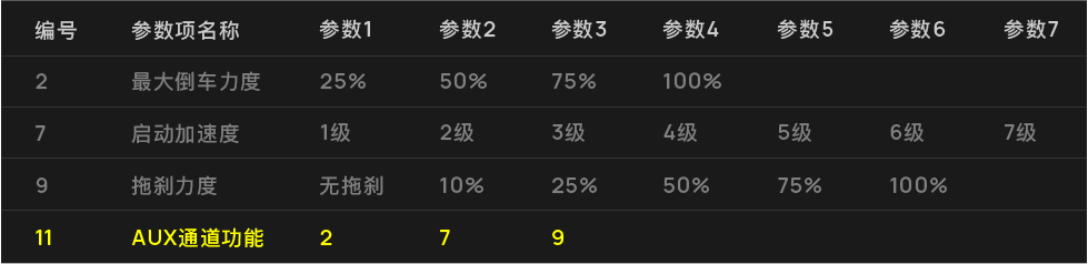 左滑查看全部备注:黄线实际功能对应"AUX通道功能"所设置的参数。